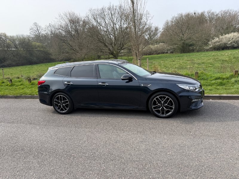 ULEZ COMPLIANT - 19 Reg - Gravity Blue (almost black) with Full Black Leather Trim, This stunning Optima GT-Line S comes with an enormous specification which includes: Full Size Panoramic Glass Sunroof, Factory Satellite Navigation, Reversing Camera, …-