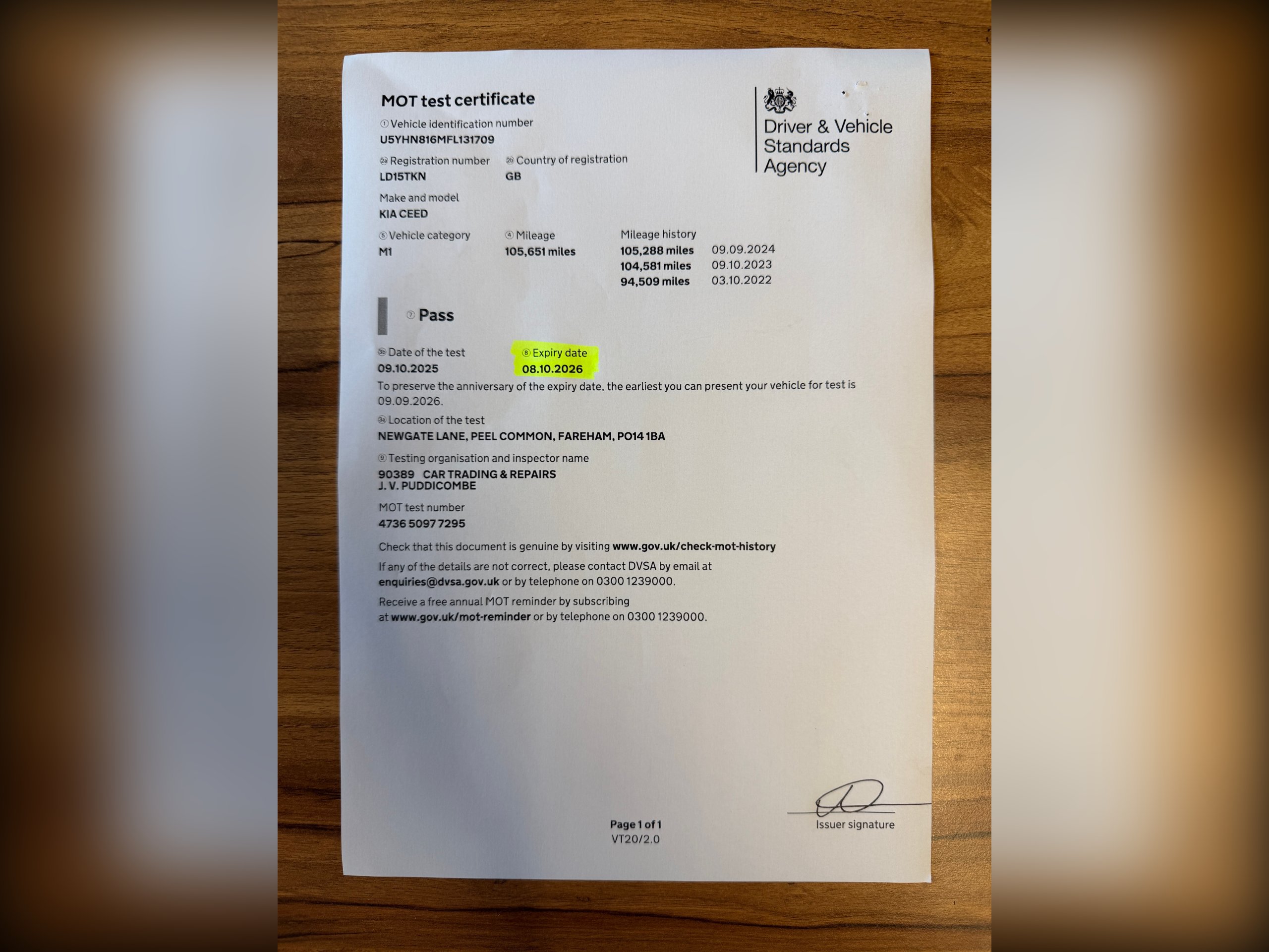 Mileage:105,000