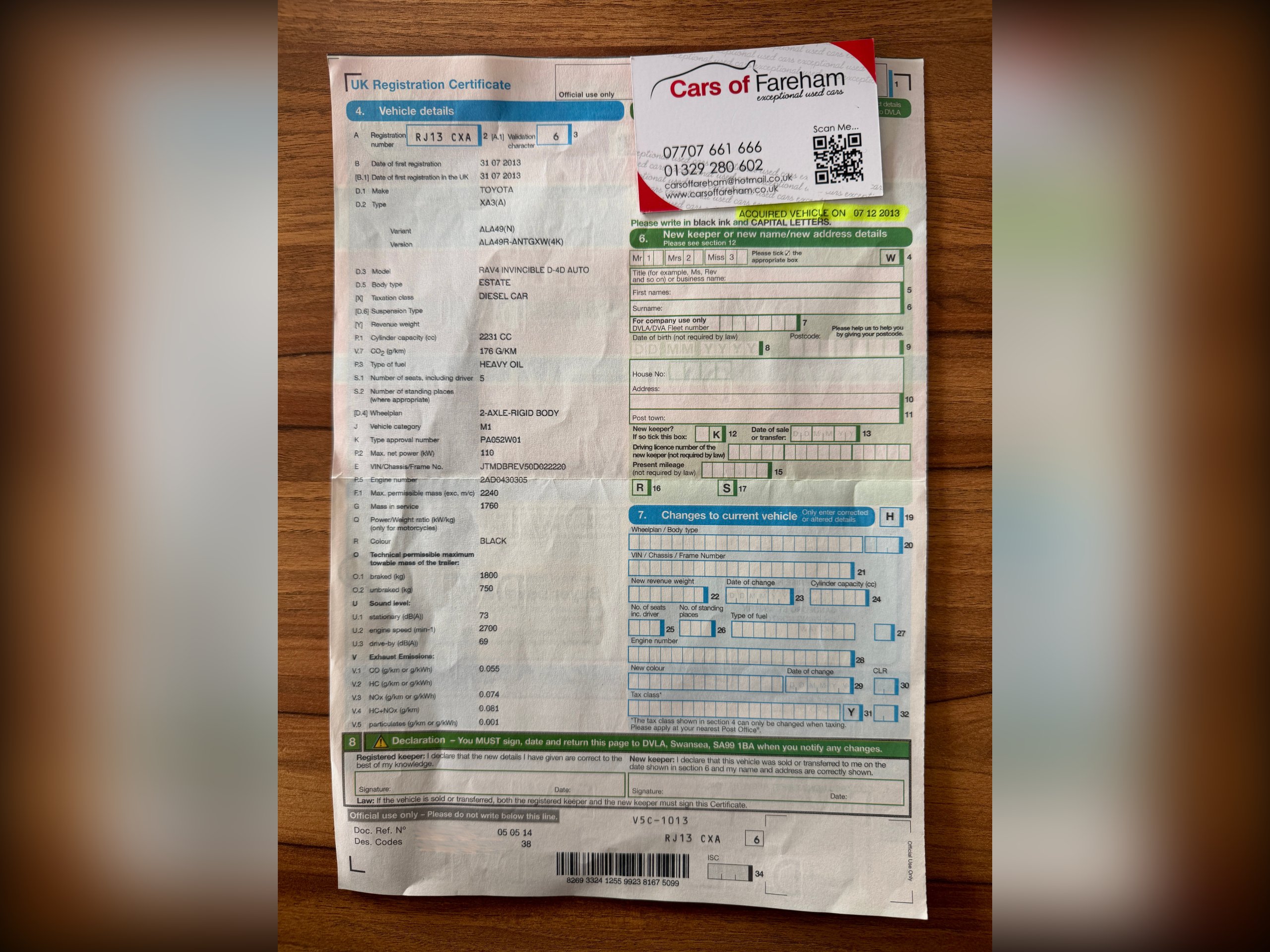 13 Reg - Eclipse Black with Full Black Leather Trim, This extremely low mileage, Rav4 Automatic Invincible comes with a very high specification which includes: Electric Glass Sunroof, Factory Colour Satellite Navigation, Reversing Camera, DAB Radio, Bluetooth, Heated Seats, Keyless Go, Xenon Headlamps, Dual Climate Control, Cruise Control, Trip Computer,, CD Player with Fingertip Controls, Power Folding Mirrors, Auto Lights, Auto Dipping Mirror, Leather Steering Wheel, Airbags, ISO-Fix Seating, 18" Alloy Wheels, Front Fogs, incredibly it has been in the same ownership since it was 4 months old (last 13 years), extremely low mileage and comes with a Full Service History on the mileage (7 services) and a brand new MOT, really a very nice looking car in very clean condition throughout and is complemented perfectly by its super high specification, and lovely service records to match, drives superbly so any inspection welcome, HPI Clear, Part Exchange up or down welcome. **Debit/Credit Cards Accepted** **Open 6 Days a week** **POOR CREDIT NO PROBLEMS - Finance available (subject to status)** (*Sometimes we may still reserve the right to not offer unaccompanied test drives)